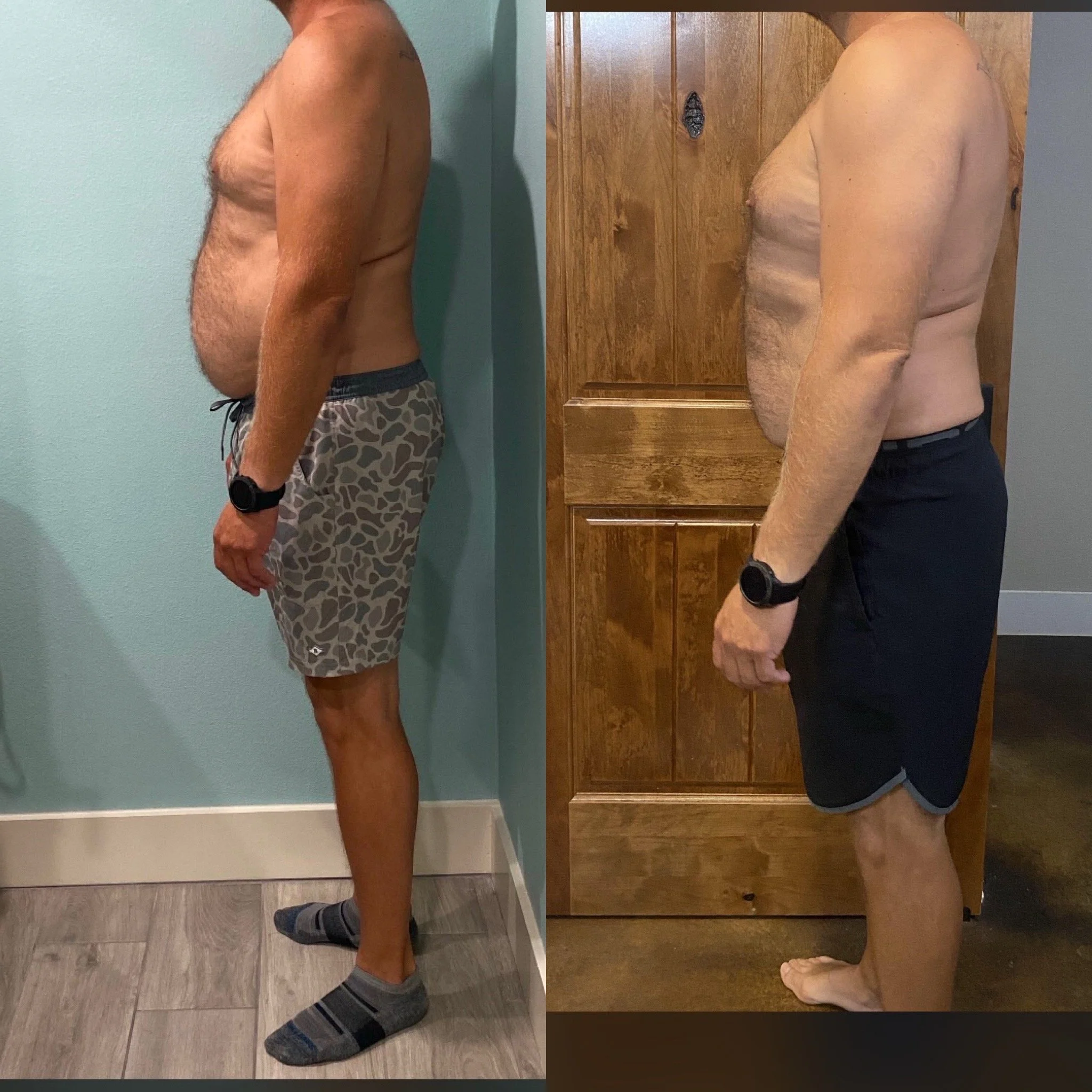 "Dan came to me wanting to get back in shape, feel healthier, and regain confidence. In just 3 months, he went from 235lbs to 210lbs by sticking to the plan and giving it his all—and the results speak for themselves."